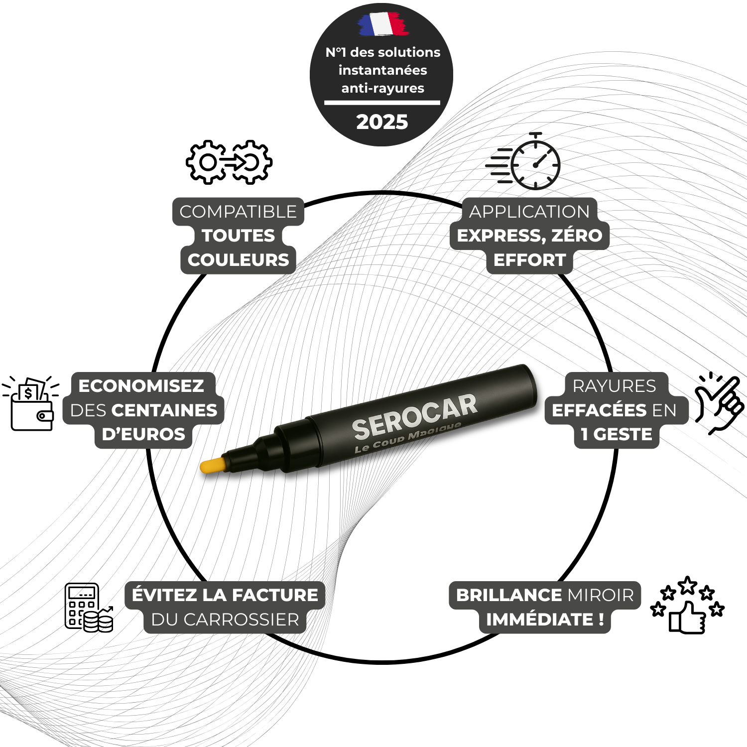 Un stylo peut corriger jusqu’à 30 mètres de rayures ! Il suffit de bien refermer le capuchon pour éviter qu’il ne sèche.